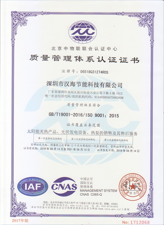 深圳市漢海節(jié)能科技有限公司成立于2011年,注冊資金6000萬元,總部設(shè)在深圳,是一家集設(shè)計(jì)、研發(fā)、施工于一體的專業(yè)化從事太陽能中央熱水工程、熱泵中央熱水工程、中央空調(diào)、光伏發(fā)電、水處理等新能源及節(jié)能環(huán)保行業(yè)的綜合服務(wù)商和工程商。在將近10年的發(fā)展歷程中,始終走在行業(yè)發(fā)展的前沿,是專業(yè)從事太陽能光熱、光伏,空氣源、太陽能熱水工程、水源熱泵,中央空調(diào),水處理產(chǎn)品的設(shè)計(jì)、安裝、售后服務(wù)為一體的高新技術(shù)企業(yè);是專業(yè)提供太陽能中央熱水工程、熱泵中央熱水工程、中央空調(diào)工程、光伏發(fā)電工程、水處理工程、太陽能熱水工程等全面解決方案的供應(yīng)商和工程商,產(chǎn)品涵蓋太陽能集熱器、空氣源熱泵、水源熱泵、中央空調(diào)、光伏組件、太陽能熱水工程等,是新能源的倡導(dǎo)者和推動(dòng)者。公司成立以來,始終秉承“誠信、責(zé)任、專業(yè)、高效”的服務(wù)宗旨,以市場需求為導(dǎo)向,以為客戶創(chuàng)造價(jià)值為己任的精神,不斷開拓創(chuàng)新,通過多年的快速發(fā)展,公司綜合實(shí)力躍居行業(yè)前列。漢海擁有一支經(jīng)驗(yàn)豐富、善打硬仗的專業(yè)高效團(tuán)隊(duì);擁有一批專業(yè)的高級工程師、中級工程師、二級建造師、造價(jià)工程師、電氣設(shè)計(jì)師、給排水設(shè)計(jì)師;擁有一批機(jī)電、安防、水、電等專業(yè)技術(shù)施工和售后人員,配備先進(jìn)齊全,實(shí)力雄厚,技術(shù)領(lǐng)先。漢海以質(zhì)量樹信譽(yù)、以工藝立標(biāo)桿、以管理創(chuàng)效益、以服務(wù)得人心,工藝水平在業(yè)界獨(dú)樹一幟,成為行業(yè)模仿的典范。漢海承建的機(jī)電工程(設(shè)計(jì)、施工)涉及星級酒店、賓館、高檔辦公樓、花園別墅、住宅小區(qū)、學(xué)校、水療中心、工廠等各種類型的工程,工程項(xiàng)目遍布全國各地。漢海將致力于成為全球信賴的新能源綜合服務(wù)商,為客戶提供新能源的全方位解決方案。未來,漢海將依托國家政策,積極開拓粵港澳大灣區(qū)、中國特色社會(huì)主義先行示范區(qū)市場及“一帶一路”沿線國際市場,推動(dòng)新能源的新輝煌。